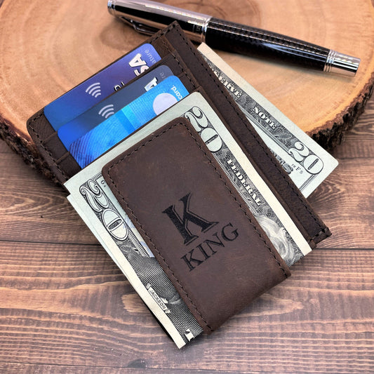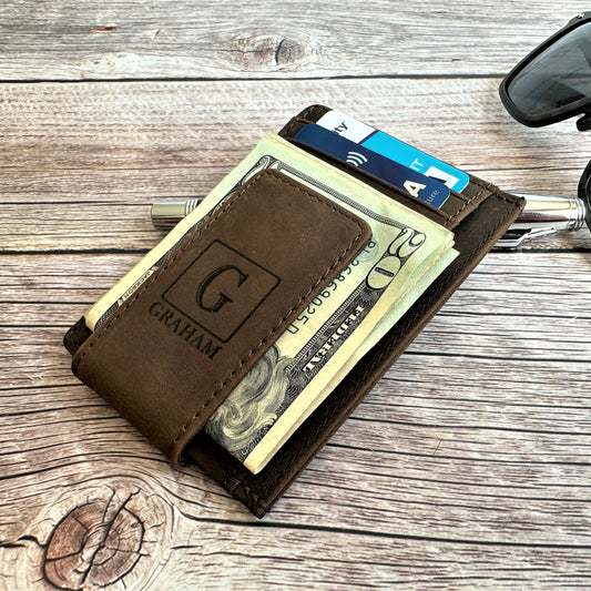 Personalized Slim Leather Wallet for Men – RFID Minimalist Card Holder – Custom Engraved Front Pocket Wallet Gift for Dad, Husband
